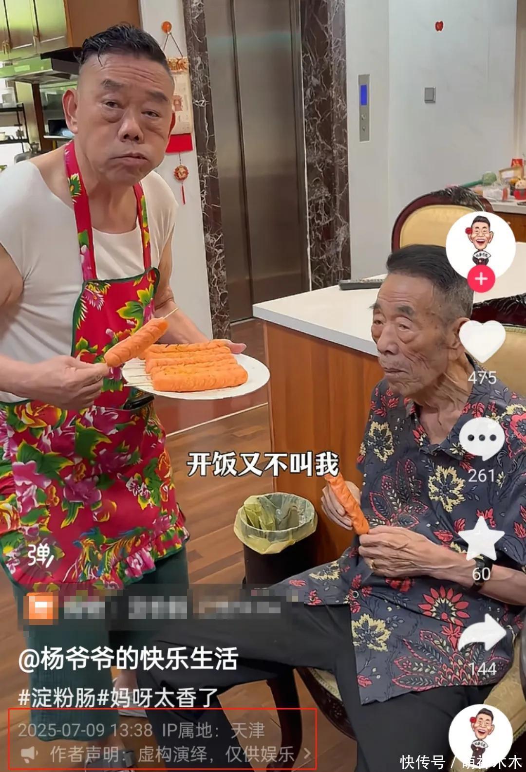与此同时,令人唏嘘的是杨少华的个人账号也在9日下午1点左右更新了动态,画面中杨少华正吃着没有任何营养的淀粉肠,儿子在一旁热闹的卖货,没有顾忌老人家是否吃得开心或者舒适。