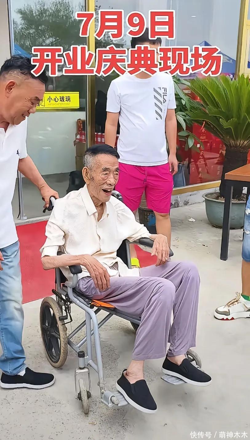 从开业典礼现场画面来看,杨少华老先生全身毫无力气,整个身子全倚靠轮椅,周围人也没有做任何降温预防措施,把杨少华当成工具人。